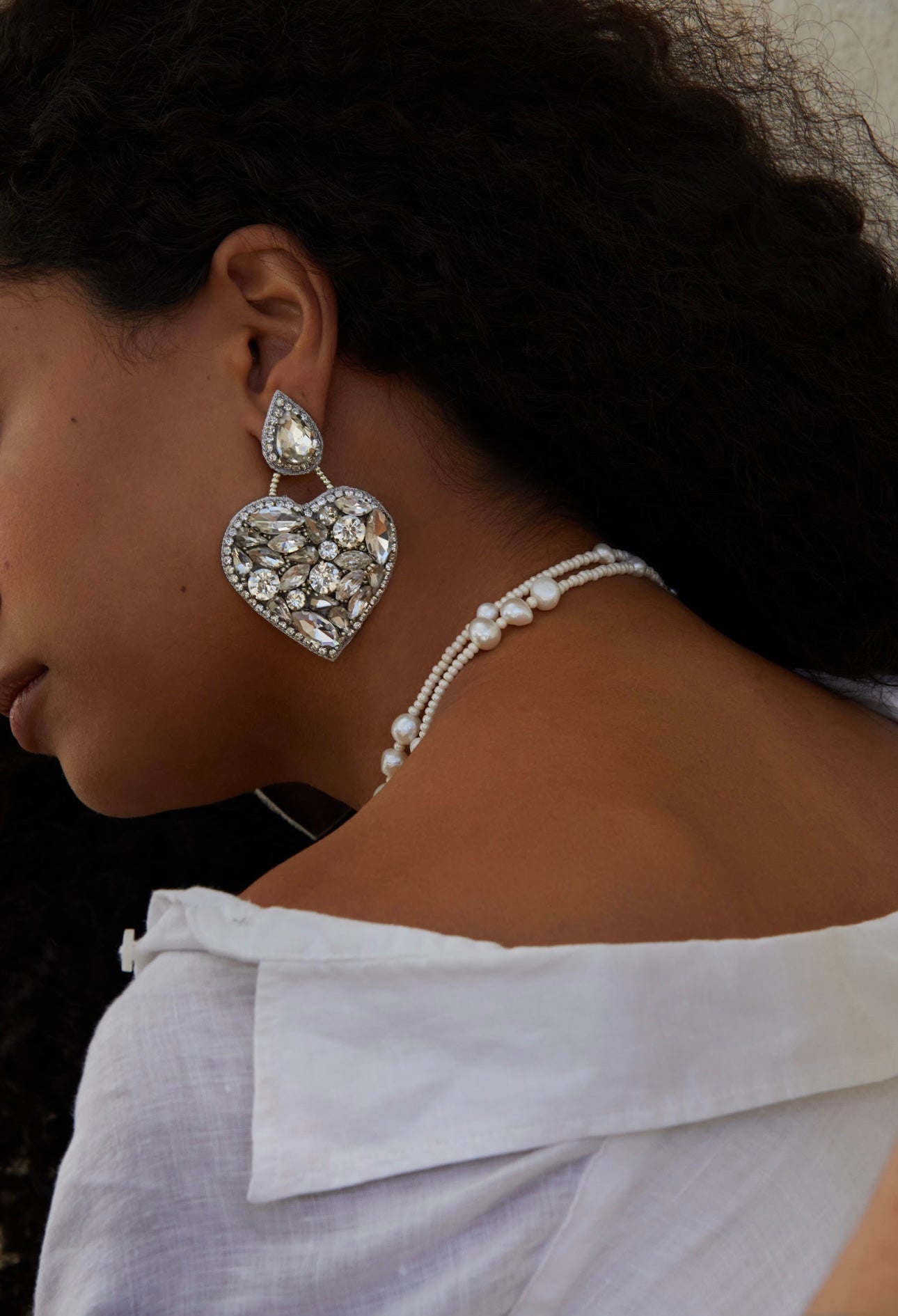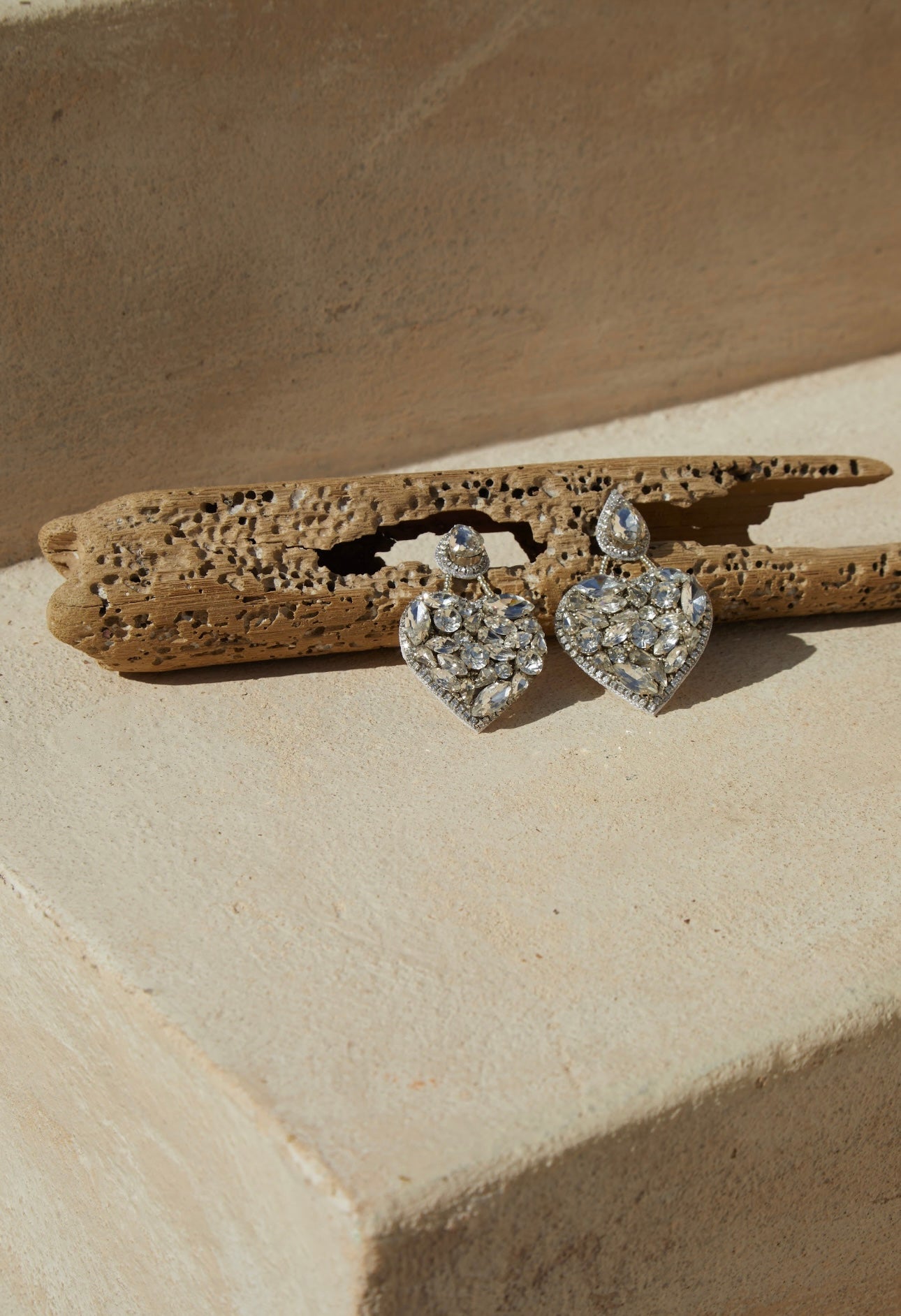 The Prune Earrings are a true work of art, meticulously handcrafted to feature crystals and strass beads intricately woven together. These earrings are further adorned with crystal accents that provide a delightful touch of sparkle. The stud showcases a tear crystal from which a heart dangles, adding an element of charm and elegance. With their unique design and luxurious details, the Prune Earrings are an accessory that radiates sophistication and beauty, making them a captivating addition to your collection.